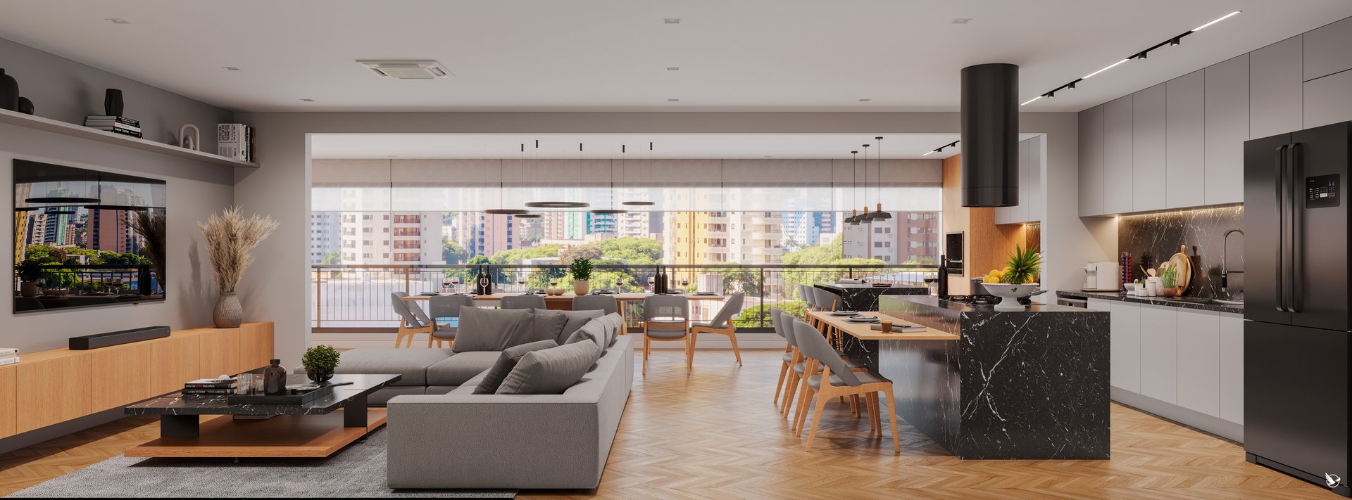 Desenvolvemos imagens 3D realistas para projetos residenciais, comerciais e imobiliários, com foco em fidelidade ao projeto, materiais e iluminação, voltadas a apresentações profissionais. As imagens contribuem para uma comunicação mais clara, fortalecendo a apresentação e valorizando os principais detalhes de cada proposta.
